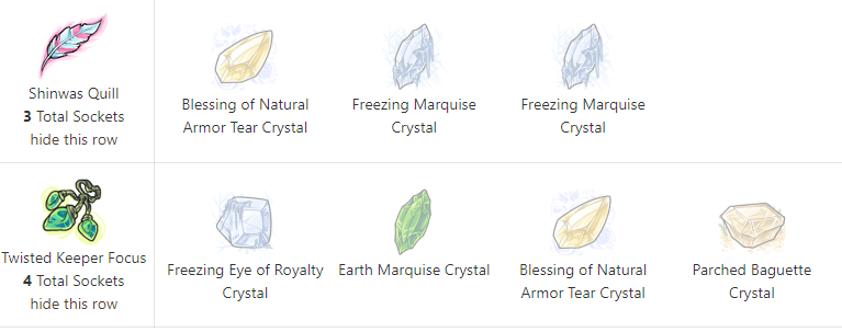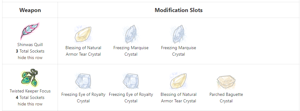 For Example you equip: Bloodred Chelon Gem and equip a :dmg:water: Marquise Crystal - we'll assign it Weapon ID Bloodred Chelon Gem and equip a :dmg:earth: Marquise Crystal - we'll assign it Weapon ID Bloodred Chelon Gem and equip a :dmg:light: Marquise Crystal - we'll assign it Weapon ID