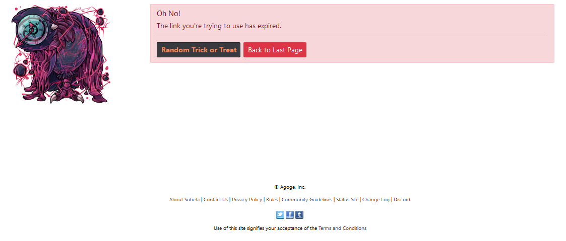 When I click on the Random ToT from the right hand bar on the news page it takes me to https://subeta.net/profile.php?act=trickortreat&random=true which shows me the following error:
