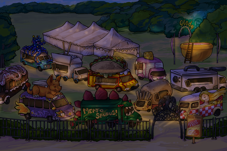 peka park appears to be erroneously using the food truck festival image at night, instead of the empty park image. additionally, the glade is not clickable, even when it's supposed to be open. i could only get there by directly inputting the URL. could the "rain/no rain" overlay be interfering with this?