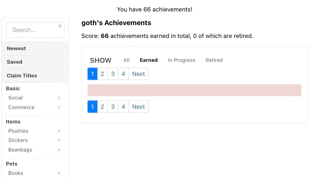 even under the wardrobe category, it appears i should have four pages of achievements but there is only a straight red line. clicking through every category i am not seeing anywhere near 66 achievements.