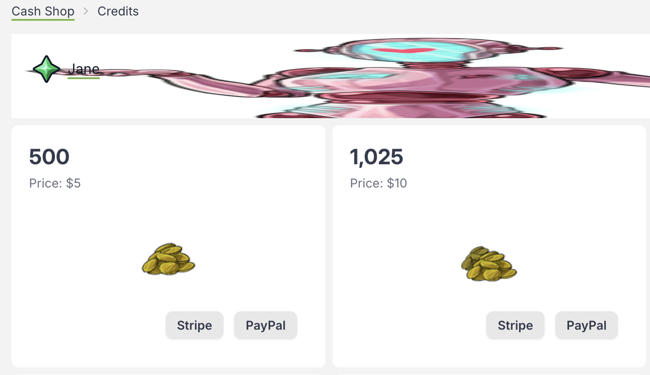 I thought they fixed the Paypal issue ages ago? That seems odd you're not seeing both Stripe and Paypal options. I've been using the buy option with Paypal on the Kumos site here for a while since they updated the Buy CSC page and I've never had any issues - it shows both Paypal and Stripe for me for all amounts (idk why the cash shop robot is like that but lol), so if it's not appearing for you sounds like making a ticket might be worth it: