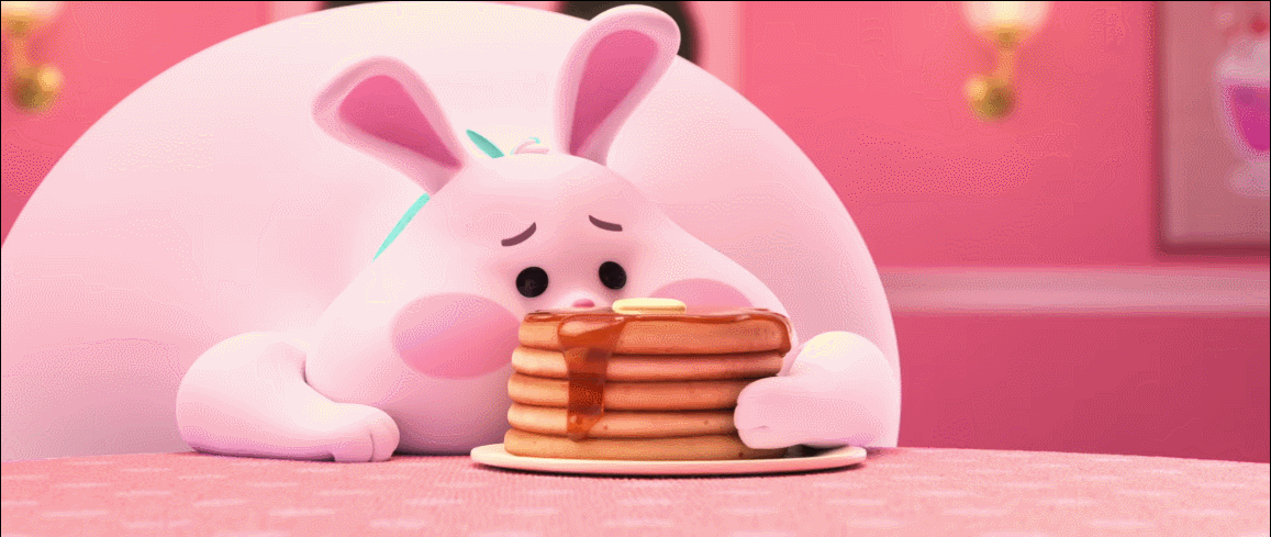 (Poor bunny. Had one too many pancakes. Could use a hug.)