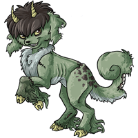The old art was great imo, but the fine details added are just- chef's kiss. I. LOVE. THE. RUFF. The signature lil curl is still there, but it's subtle and blends wonderfully with how sticky-uppy the fur is now. Dude, I can feel the texture of this thing just looking at it. The fur feels all matted and gross (y'know, in a good way), but also weirdly soft? Those back LEGS, bro! You can really feel the thin skin stretched over its poor, emaciated lil bones. Moving the bone detail onto the top of the tail from the side looks so much better, especially with all of that fur given more room to jut out all over, looking unkempt af. The hooves look much nicer in general with the softer shading. The hair and ears look fluffier and messier than ever in the best way. Love the slightly uneven horns. Love the slight change in the front limbs- the pose looks much cleaner and distinct overall. Okay, and, normally I’m not a fan of closed mouth grins on pets for whatever reason, but this dude’s rocking it. Looks like SUCH a lil shit that just got up to some mischief, bless him. xD I’m neutral on the addition of the back wound and changing the markings to wounds, but they’re very well done. I do love how lumpy the back wounds make the lil fella overall- this guy’s just got all kinds of macabre TEXTURE all over and it’s great.