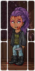 Thank you! Well, let's see... I had to cover my zombieness, so I put on Gray Sweater. But it looked plain and I added Coal Mole and Coal Mist and Sweaty Rag